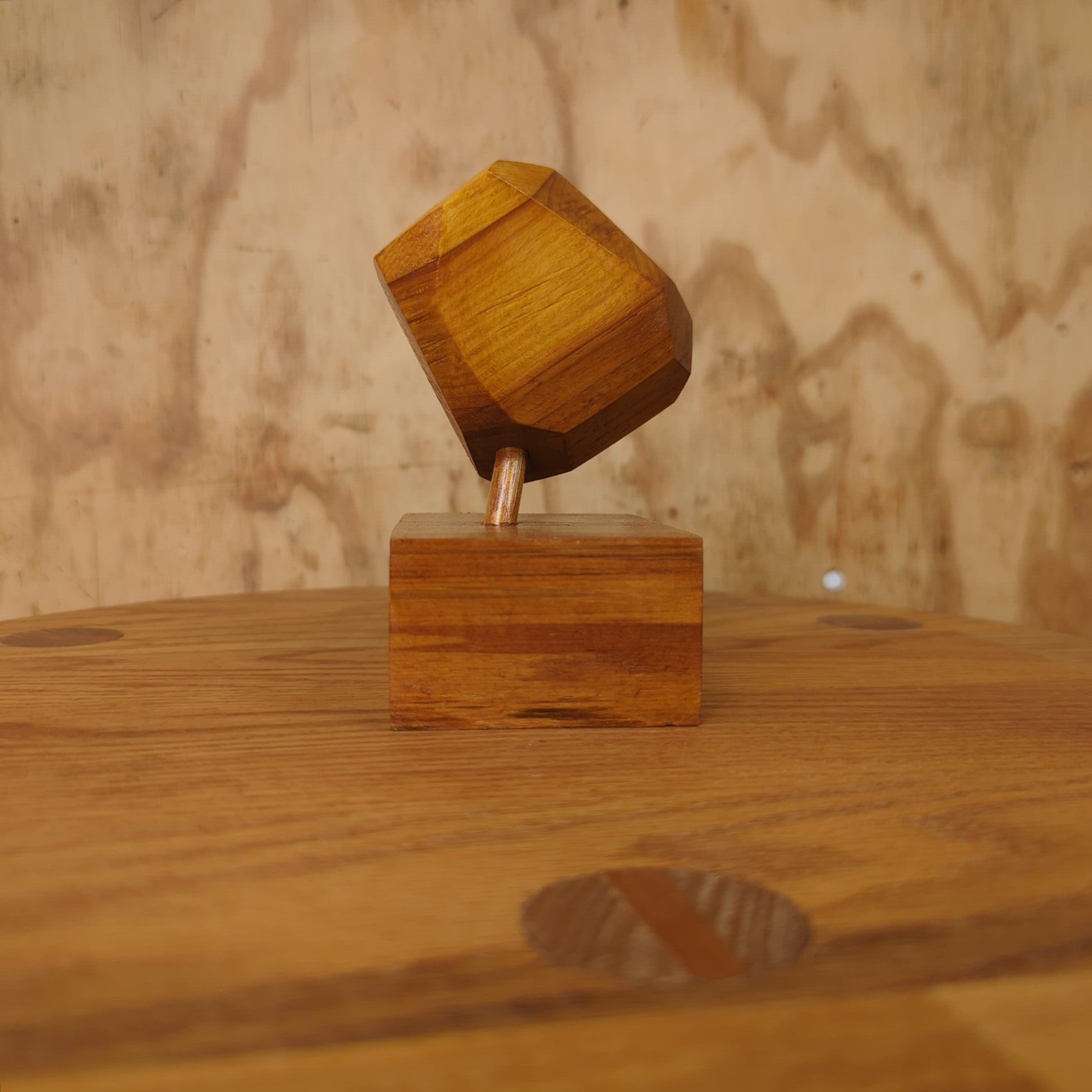 The faceted shape gives it a contemporary, minimalist look, while the warm wood tones add an earthy balance. Perfect as a desk accent, bookshelf display, or gift for anyone who loves sustainable, handcrafted decor.